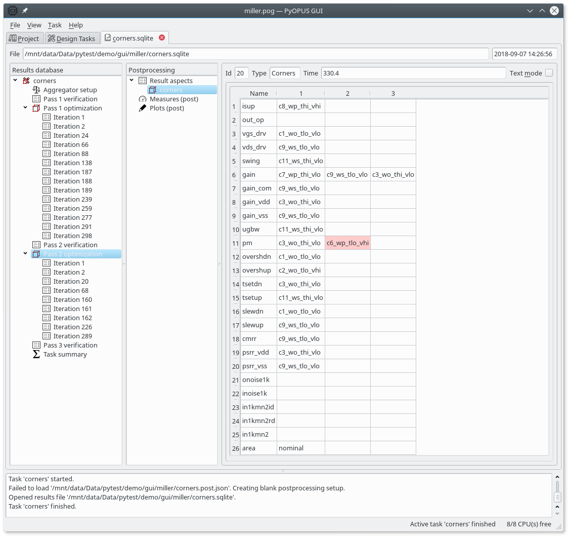 The corners used in the second optimization pass. We can see that only one corner has been added to those used in the first pass (c6_wp_tlo_vhi for the pm performance measure).