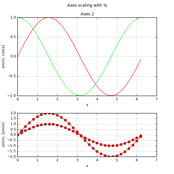 ax1.set_ylabel('sin(x), 2sin(x)')
